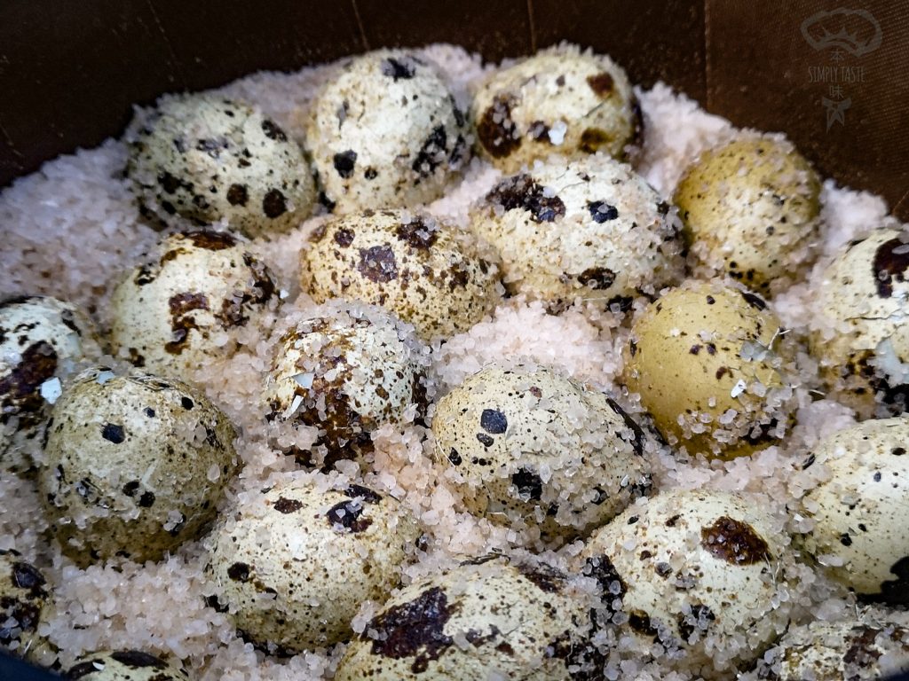 中式, 本味・研舍 Simply Taste, 生酮, 食譜Simply Taste 《低醣生酮食譜》-鹽焗鵪鶉蛋(氣炸鍋簡易版)Published : 05/09/202007/09/2020<份量>24隻<食材>鵪鶉蛋-24隻鹽-1茶匙<醃料>鹽-600克五香粉-1湯匙<製作步驟>鵪鶉蛋洗淨與常溫水同放鍋內,以中小火煮滾後加入鹽,轉中大火開始計煮2分鐘;馬上取出沖水降溫至不燙手,輕敲裂蛋殼;將醃料拌勻放氣炸鍋以200度預熱10分鐘;將一半鹽取出放入鵪鶉蛋,把鹽舖上將蛋完全覆蓋;以110度焗20分鐘,關火焗一個小時以上令其入味即可享用。